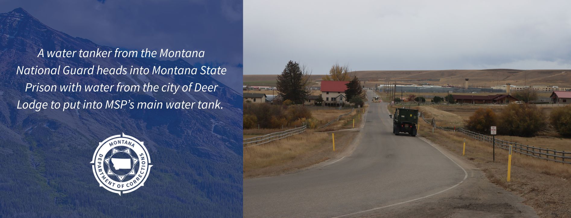 Additionally, the Montana National Guard was mobilized and arrived at MSP at 1 p.m. on Saturday to help deliver 15,000 gallons of water from the city of Deer Lodge to the main water tank. The National Guard will be available throughout the weekend to help resupply the main water tank if needed. Pallets of water bottles will continue to be delivered to the facility throughout the weekend and into next week.